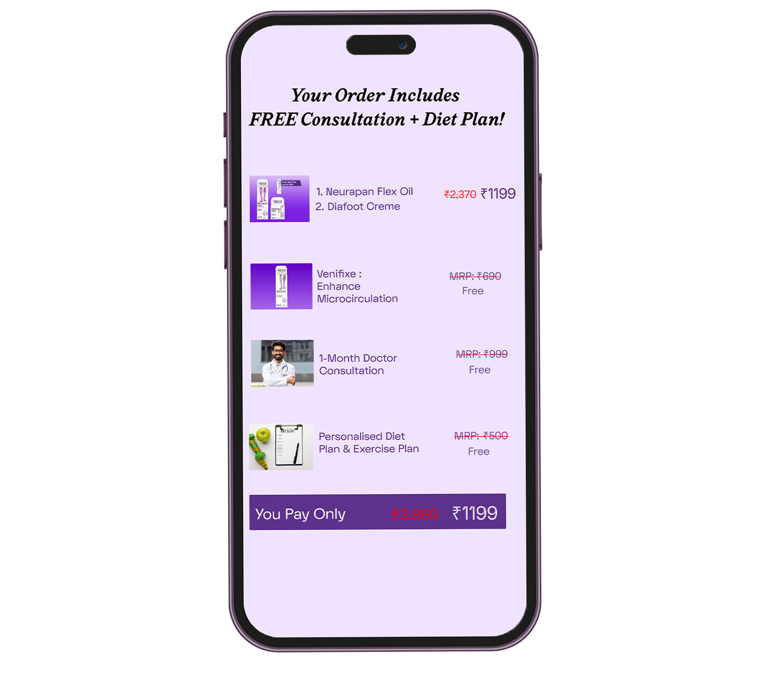 Our program targets the root causes—poor circulation, nerve damage, inflammation, andweak muscles. You receive a personalised plan that includes: