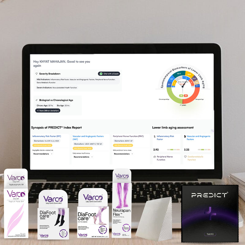 Varco is India’s first dedicated leg-health platform, focused on conditions like varicose veins, diabetic foot, neuropathy, and knee osteoarthritis. We combine science-backed formulations, diagnostics, and personalised care to help you heal from the root.